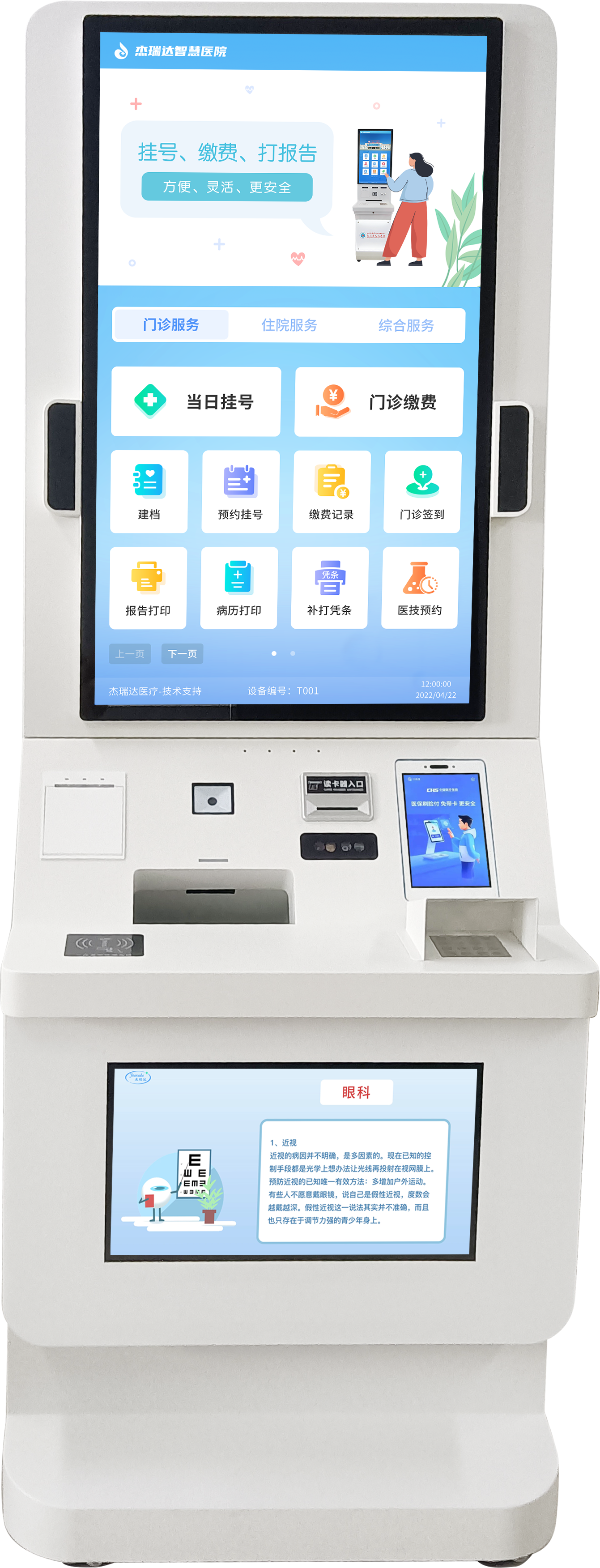 成都杰瑞達科技有限公司成立于2009年,坐落于四川成都市武侯區聯邦財富中心,是一家專注于醫院智慧門診就醫服務系統軟硬件研發、生產、銷售于一體的高新技術企業,主要系統有掌上醫院系統、自助終端就診系統、門診排隊叫號系統、導航導診系統、信息發布系統、排班系統等軟硬件系統;產品廣泛應用于云、貴、川、渝、甘、陜等地區、截止2021年擁有醫療信息化相關計算機軟件著作權42件、專利技術12件、專業機構檢測報告26件;相關產品通過CCC、FCC認證。且擁有業內優秀的專業技術人才和質量管理人員,部分技術榮獲成都市科技局頒發的科技進步一等獎;屬于"雙創板"掛牌企業,證券代碼:811283。 杰瑞達醫療深入醫療行業核心場景,專注于醫院信息化、智能化建設,以“建設智慧醫院,守護大眾健康”為使命,秉承以誠信為本,求實創新,厚德載業,服務社會的經營理念;利用云計算、互聯網、AI、大數據、物聯網等新興技術研發 HMIS(健康管理系統)平臺,為患者提供就診及健康管理的全流程優質服務,以人為本,精準定位,不斷推陳出新,為醫院提供智慧醫院最優解決方案,持續為用戶和伙伴創造價值,為社會、為人民服務!